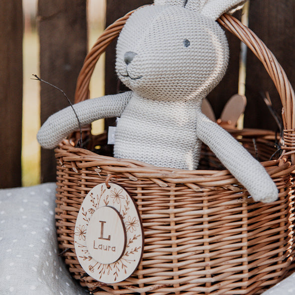 Verschönere das Tascherl deiner Lieben noch mit einem personalisierten Oster-Ei, Hasenanhänger oder Oster-Ei Anhänger.